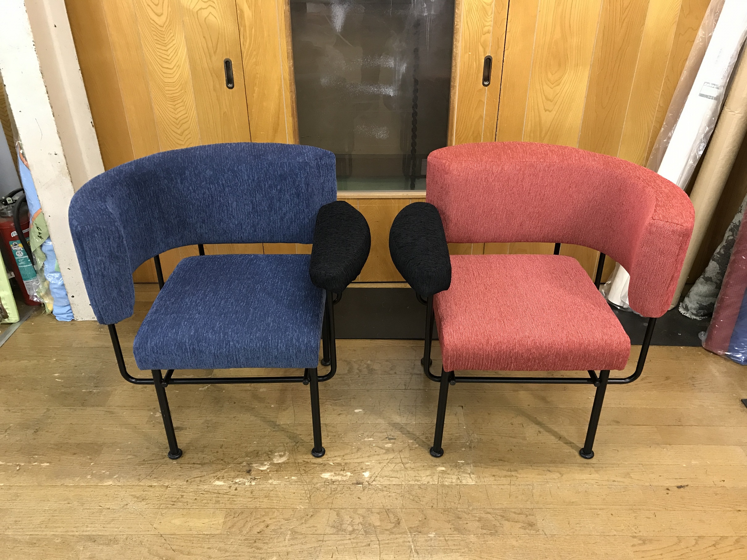 パーソナルチェアー張替え後です(1)♪ 青・赤♪