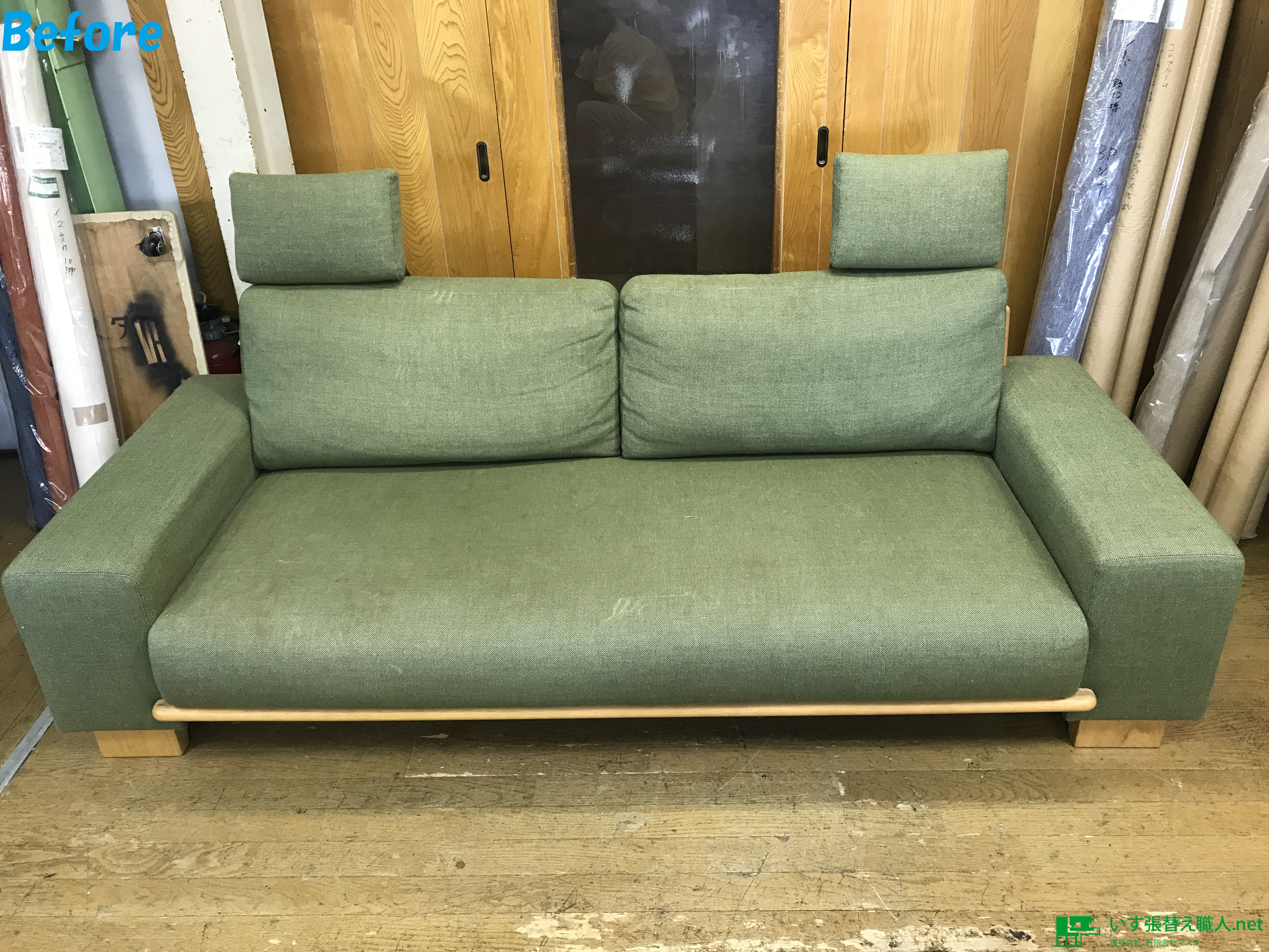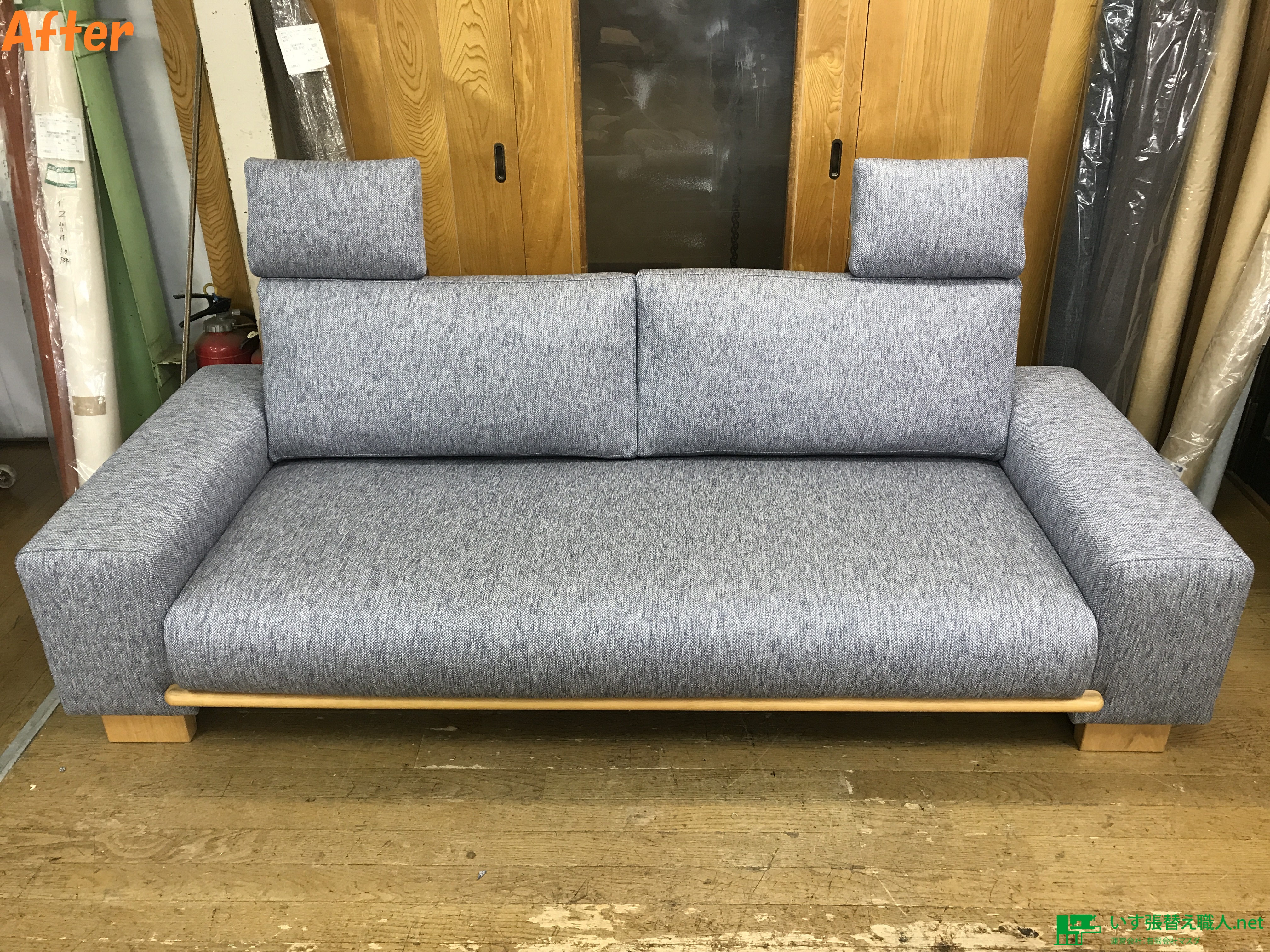 3人掛けソファ張替え 張替え前・張替え後|椅子張替えならいす張替え職人.netへ